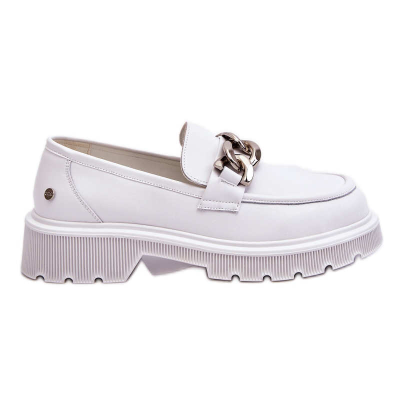 Mocassini in pelle con catena GOE LL2N4038 in bianco è la scelta perfetta per ogni donna che apprezza l'eleganza e il comfort. Realizzati in pelle naturale, hanno un aspetto eccezionalmente elegante e di classe. Decorati con una catenella in plastica, aggiungono un carattere moderno all'insieme, che li distingue dagli altri modelli.