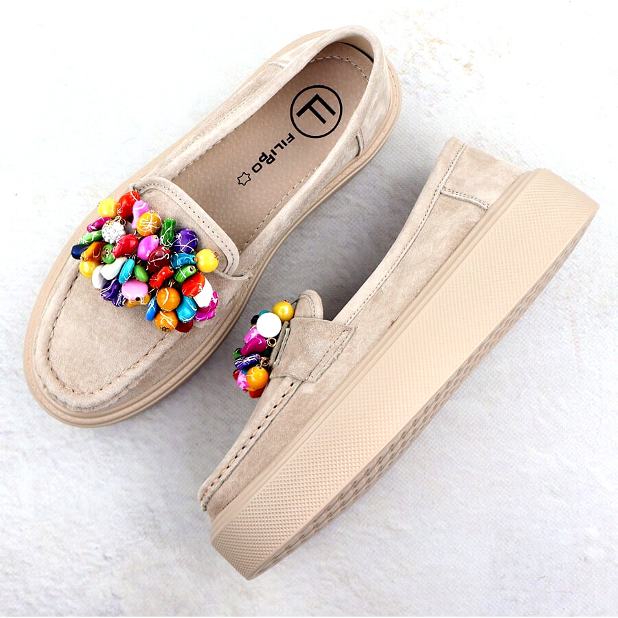 Mocassini in pelle su una piattaforma con beige beige filippo dp6765 è una grande proposta per le donne che vogliono combinare comfort con un look alla moda. Realizzate in pelle in pelle scamosciata naturale di alta qualità, queste scarpe non solo sembrano eleganti, ma sono anche resistenti e confortevoli.
