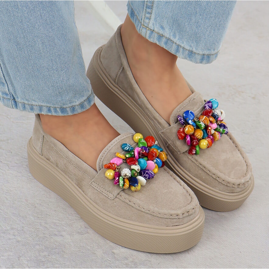 Si distinguono per un design unico, che sono arricchiti con perle sottili, dando loro un po 'di bagliore e fascino. Perfetto per varie stilizzazioni - da casual a più eleganti. Una soletta in pelle morbida offre comfort tutto il giorno, il che li rende la scelta perfetta su base giornaliera.