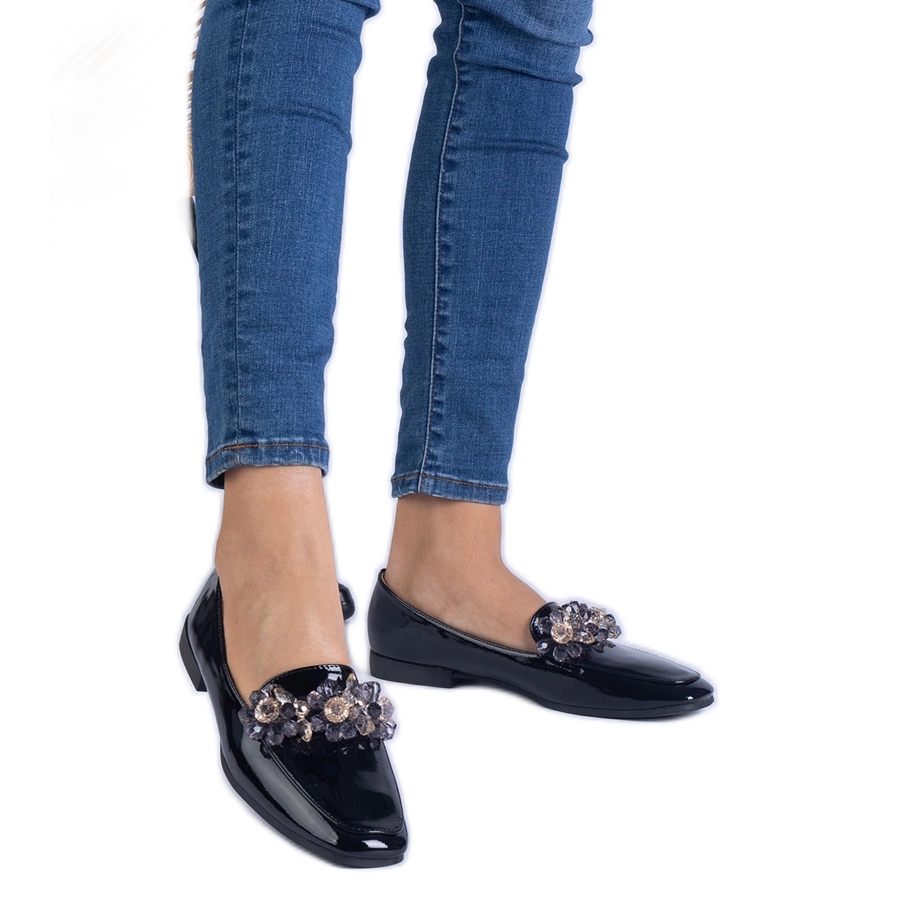 Dettagli: Mocassini verniciati neri con cristalli nero