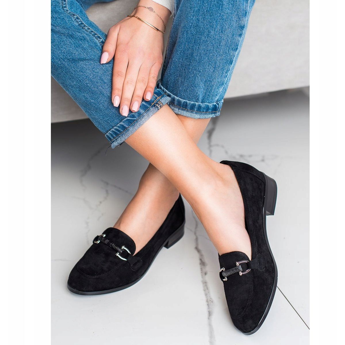 Presentiamo i mocassini Vinceza con tacco basso in un'elegante tonalità nera. Queste scarpe leggere e comode sono la scelta perfetta per le giornate primaverili ed estive, sono perfette sia per lo stile di tutti i giorni che per le occasioni speciali. Grazie alla pelle scamosciata ecologica di alta qualità, le scarpe sembrano eccezionalmente eleganti e la punta rotonda con una decorazione originale aggiunge loro carattere.