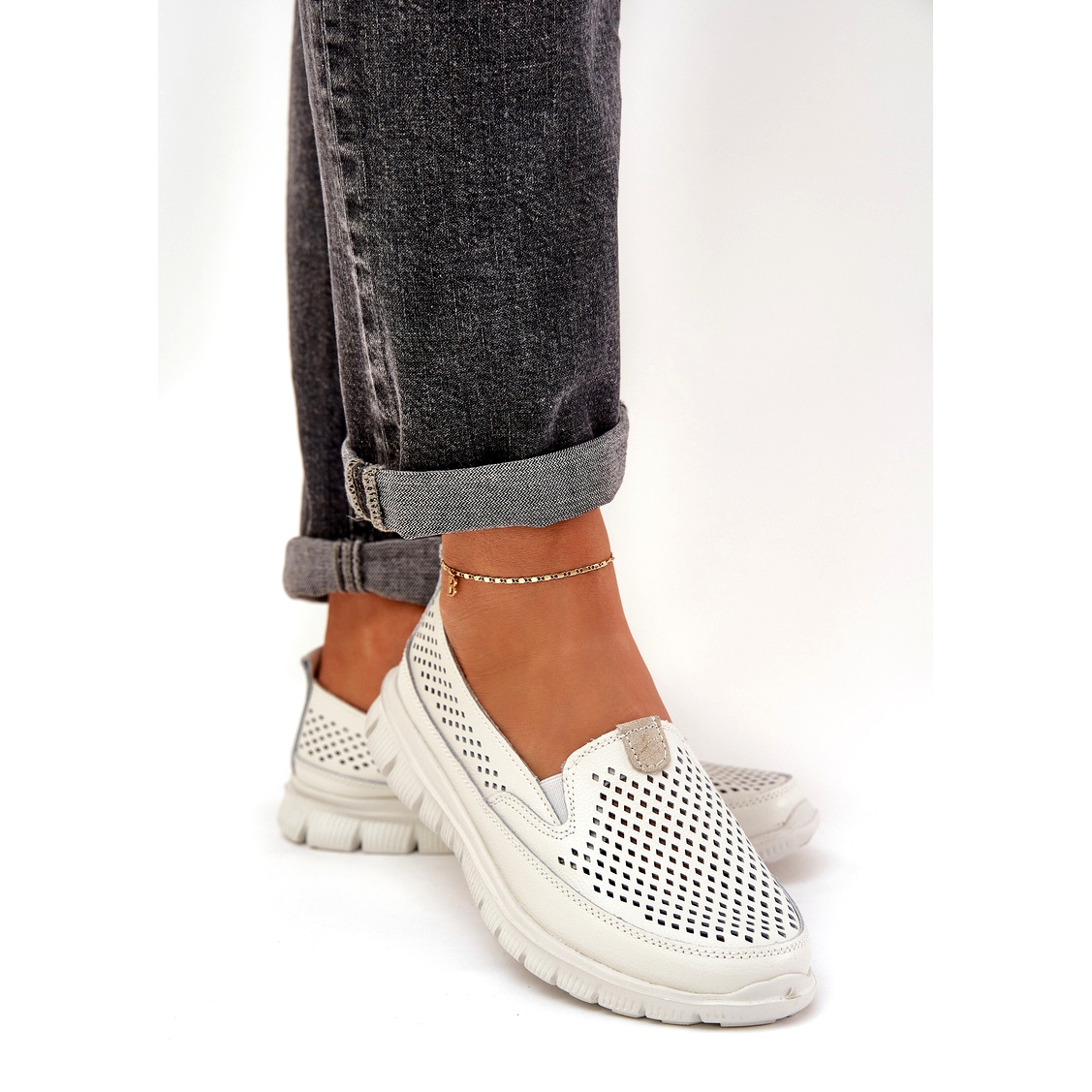 Scopri l'eleganza e il comfort grazie a Openwork Moccasins evento 24pb18-6870 in un classico colore bianco. Queste scarpe da donna leggera realizzate in pelle naturale sono una proposta ideale per le giornate calde, combinando un design alla moda con funzionalità. Situato su una piattaforma stabile con un'altezza di 3 cm, offrono non solo comodità, ma anche un aspetto attraente che completerà perfettamente le stilizzazioni quotidiane.