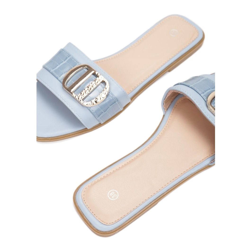 Ciò che attira particolare attenzione è la cintura decorativa con scanalature che imita la pelle di coccodrillo, aggiungendo eleganza e originalità. Realizzati in pelle ecologica, sia il materiale esterno che l'inserto garantiscono durata e comfort di indossamento. Grazie alla suola sintetica, le infradito sono leggere e flessibili, il che rende ogni momento trascorso al loro interno un puro piacere.