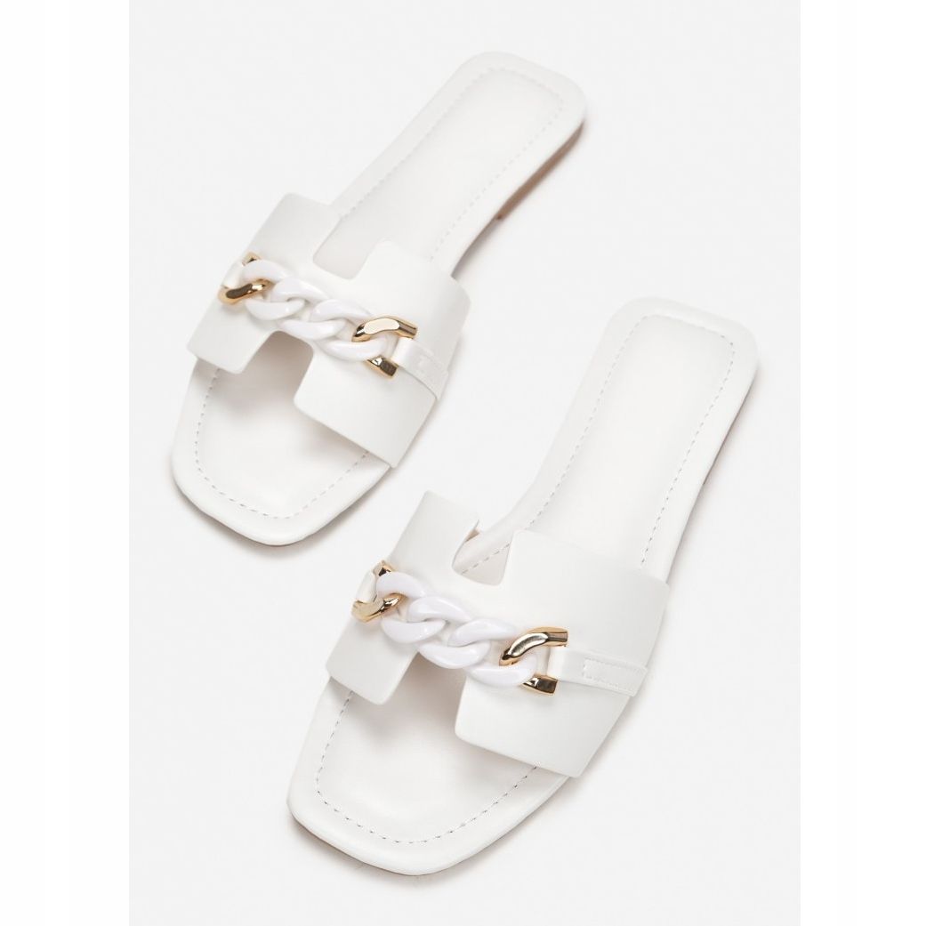 Le infradito Vices 2136-71 nell'elegante colore bianco sono la scelta perfetta per ogni donna che ogni giorno ricerca comodità e stile. Questi sabot slip-on sono caratterizzati da una punta quadrata aperta, che conferisce loro un look moderno. Un ampio cinturino sulla punta, decorato con un'accattivante catena in tinta, aggiunge carattere e rende le infradito non solo comode, ma anche alla moda.