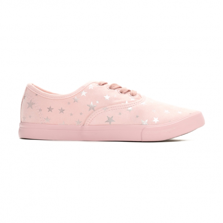 La tomaia in pelle scamosciata ecologica conferisce loro un look elegante, e la punta rotonda aggiunge comfort, rendendole una scelta ideale per l'uso quotidiano. Le sneakers sono montate su una suola piatta in gomma, che garantisce una buona presa e durata. Inoltre, l'altezza ridotta del tacco (2 cm) rende il modello comodo e universale.