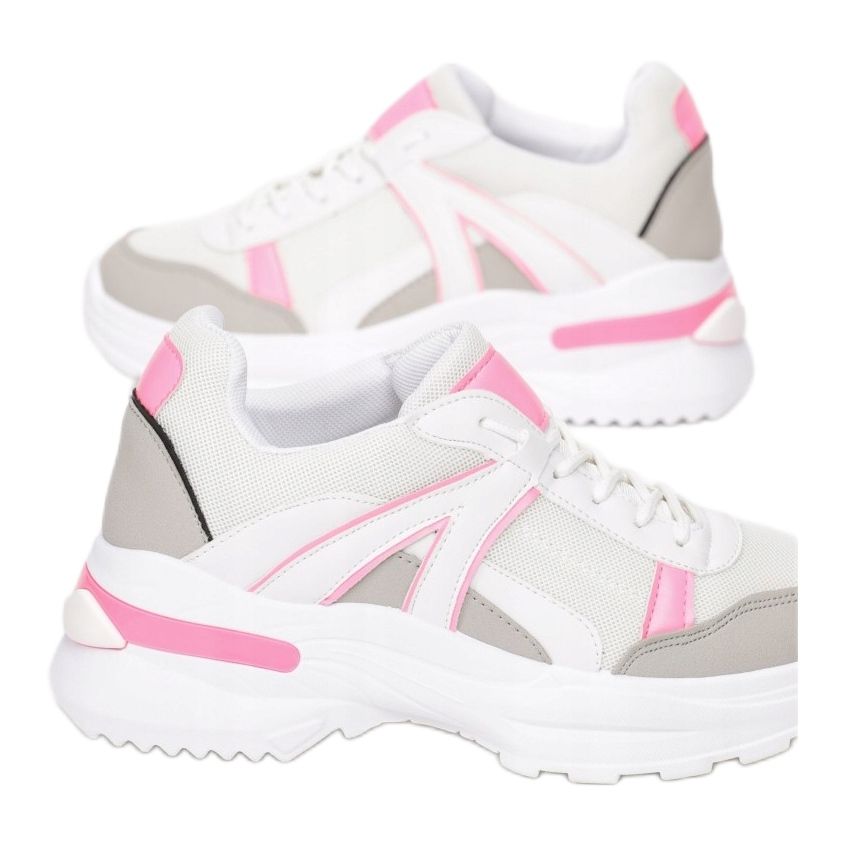 Le sneakers Vices 8539-83 in bianco, rosa e grigio sono la scelta perfetta per le donne che apprezzano le calzature sportive alla moda e comode. Grazie alla suola irregolare e spessa con scanalature, queste scarpe offrono un'ottima aderenza e ammortizzazione, che le rendono perfette sia per lo styling quotidiano che per le attività all'aperto.