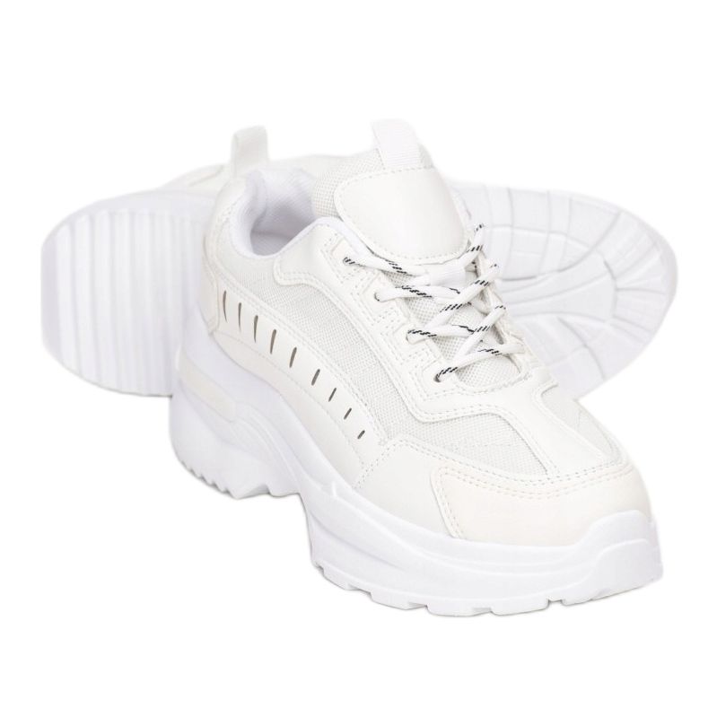 Le sneakers Vices 8555-71-bianche sono un'ottima scelta per le donne che apprezzano non solo un look alla moda, ma anche il comfort nell'indossarle. Queste scarpe bianche stringate con suola spessa e irregolare e battistrada di varie forme sono perfette sia per lo styling quotidiano che per l'attività fisica.
