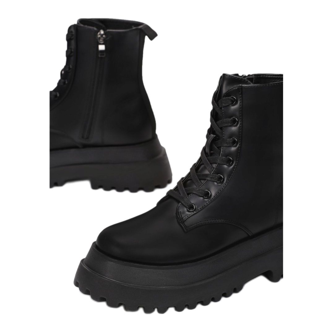 Gli stivali hanno una punta rotonda, che aggiunge loro fascino, e il classico colore nero li rende estremamente universali: è facile abbinarli a vari stili. La chiusura in pizzo consente una regolazione precisa al piede, aumentando ulteriormente il comfort.