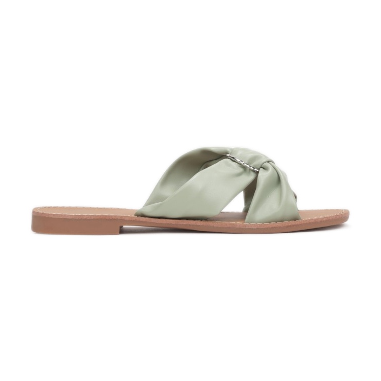 Le infradito Vices CD203-61-verde sono la scelta perfetta per le donne che apprezzano il comfort e lo stile ogni giorno. Questi eleganti sandali bassi si distinguono per la punta aperta e i cinturini larghi e collegati sul davanti, che conferiscono loro un carattere moderno. L'applicazione rotonda sui cinturini è un dettaglio sottile che attira l'attenzione e allo stesso tempo è coerente con lo stile minimalista.