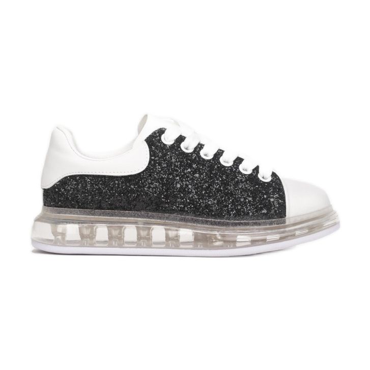 Un accento interessante sono gli inserti glitterati sui lati, che aggiungono carattere e lucentezza unici. Queste scarpe da ginnastica sono allacciate con lacci piatti, che consentono loro di adattarsi facilmente al piede. Degna di nota è anche la spessa suola riempita di gas, che fornisce un'eccellente ammortizzazione, prendendosi cura dei tuoi piedi durante l'attività.