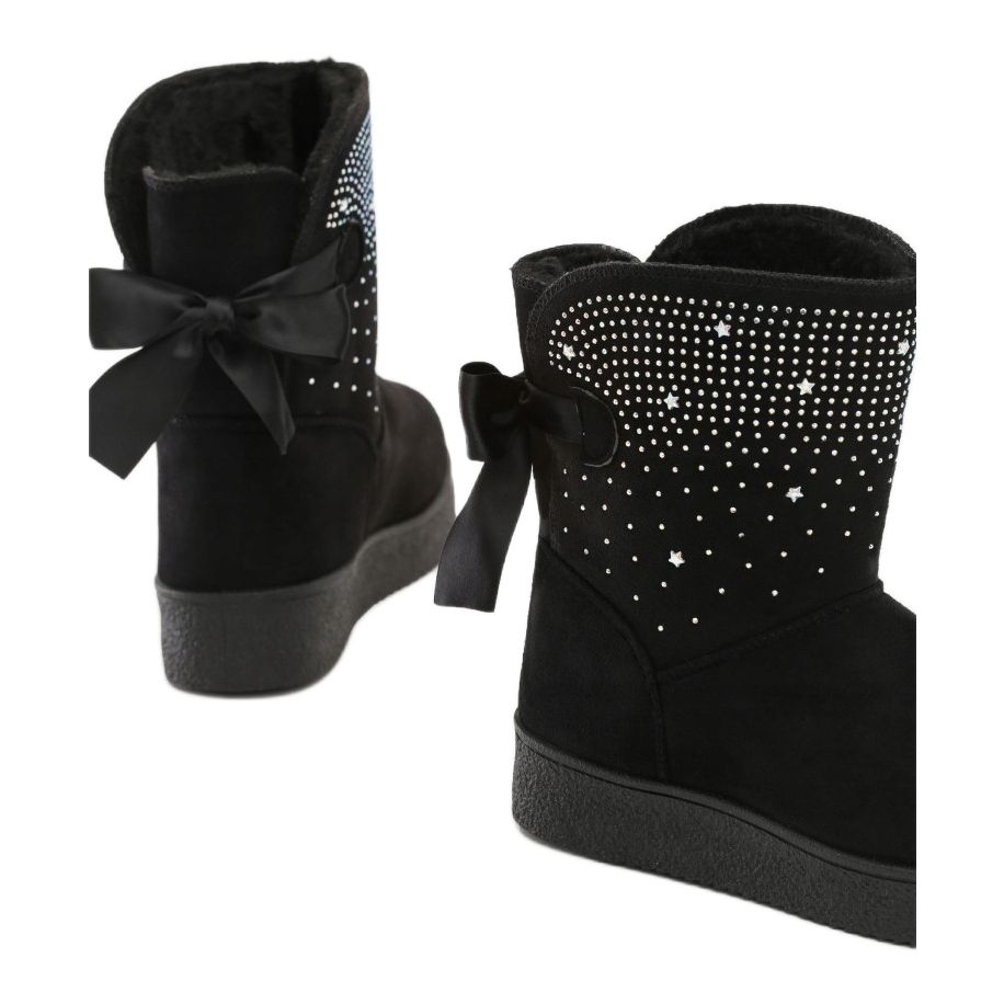 Il caratteristico plateau alto 3,5 cm aggiunge comfort durante la camminata, e la punta tonda rende questi doposci non solo pratici, ma anche alla moda. Un ulteriore vantaggio sono gli strass decorativi sulla tomaia, che aggiungono un accento elegante allo stile quotidiano. Un sottile fiocco completa il tutto, donando alle scarpe un fascino femminile.