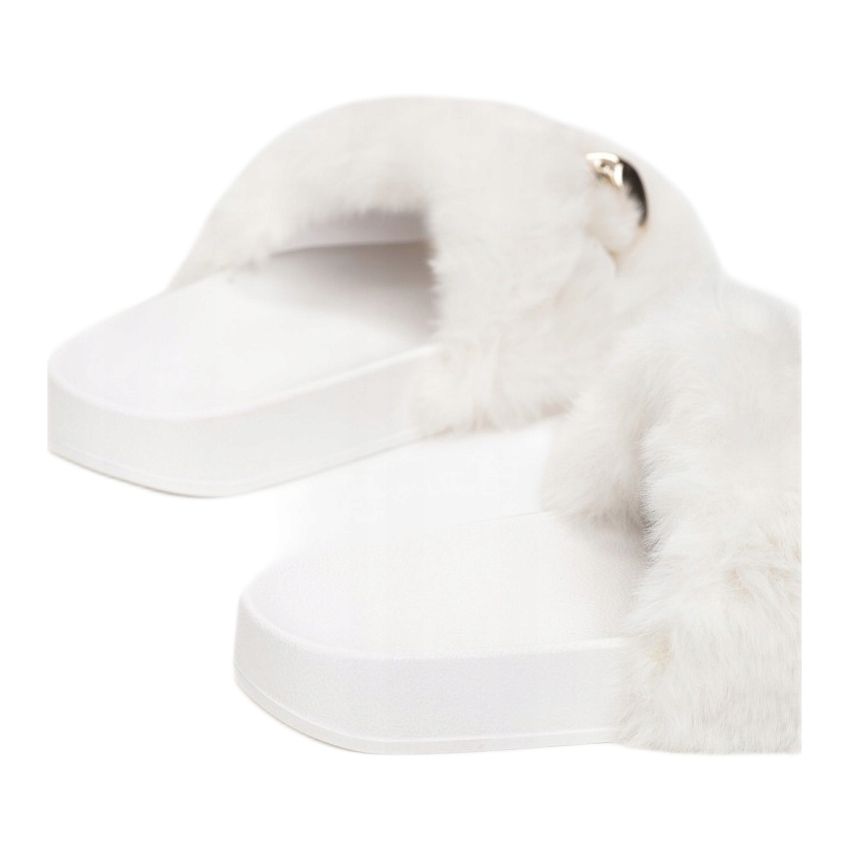 Scopri l'eleganza e la comodità con le infradito Vices NA18-71 nel classico colore bianco. Queste ciabatte slip-on sono la perfetta combinazione di stile e funzionalità, perfette per lo stile di tutti i giorni. La parte anteriore è decorata con un'ampia striscia di finta pelliccia, che conferisce loro un carattere unico, e un'elegante applicazione a forma di catena conferisce al tutto un tocco di design.