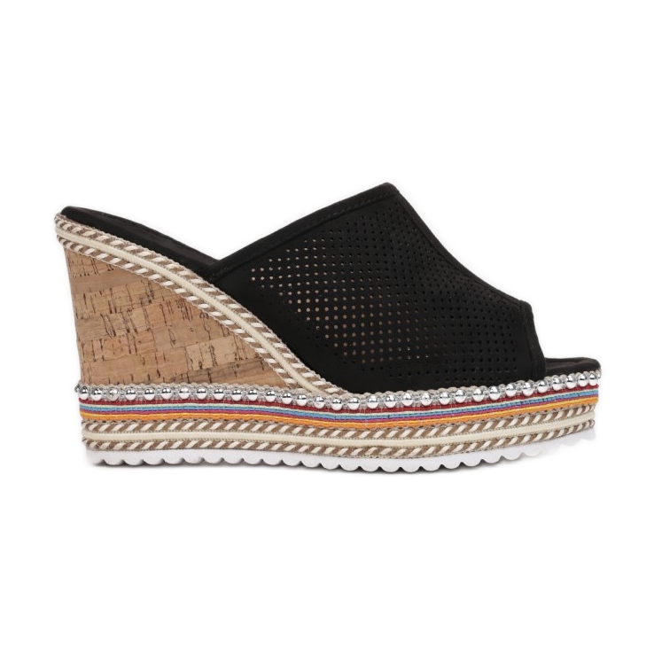 Le infradito Vices XF91-38 in nero sono la perfetta combinazione di comfort e design alla moda. Offrono non solo comodità nell'indossarli, ma anche un look elegante. La piattaforma alta e la zeppa alta 11 cm aggiungono altezza visiva e allo stesso tempo forniscono stabilità durante la camminata.