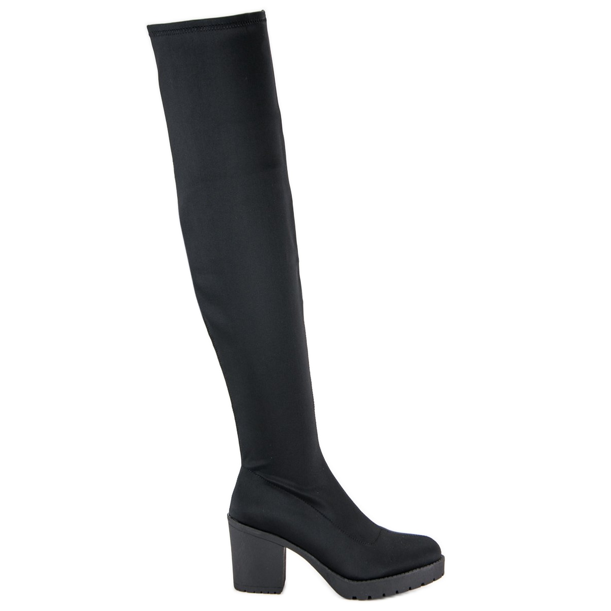 Questi moschettieri sono stati progettati pensando al massimo comfort ed estetica. Grazie all'utilizzo di materiale con aggiunta di Lycra, la tomaia si adatta perfettamente alla gamba, eliminando la preoccupazione che le scarpe scivolino via. Il plateau spesso e il tacco di 8,5 centimetri a forma di blocco non solo allungano la silhouette, ma forniscono anche stabilità durante la camminata.