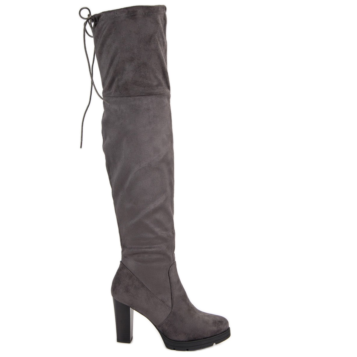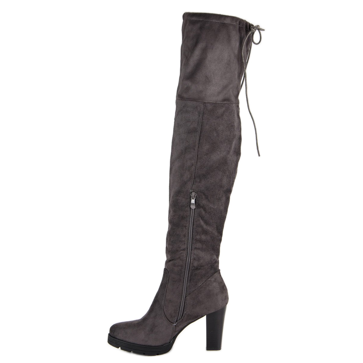 Scopri l'eleganza e lo stile con i moschettieri Seastar in una tonalità di grigio! Queste scarpe alte e classiche con stiletto sono la scelta perfetta per le donne che vogliono unire la comodità ad un look alla moda. Realizzate in pelle scamosciata ecologica, si caratterizzano non solo per il design accattivante, ma anche per la funzionalità. La tomaia alta, che arriva sopra il ginocchio, protegge efficacemente le gambe dal freddo e dall'umidità, rendendoli un'ottima scelta per le giornate fredde.
