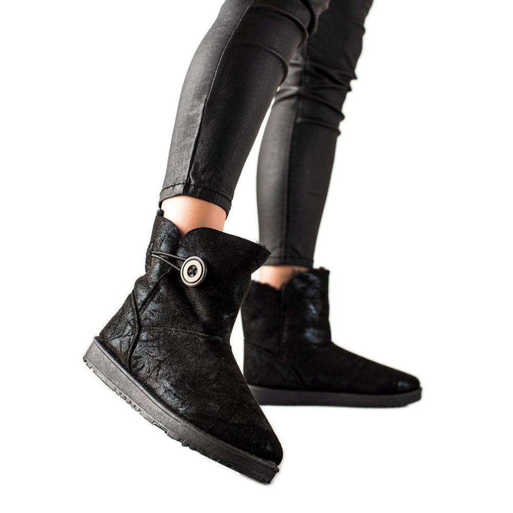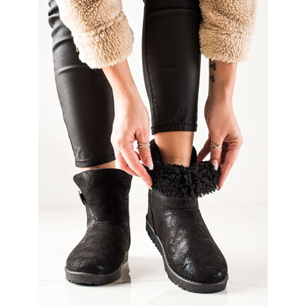 Realizzate in finta pelle scamosciata di alta qualità, queste scarpe sono caratterizzate da un elegante colore nero e da un discreto accento glitterato che conferisce loro una lucentezza unica. Un morbido contrafforte integrato e una fodera in tessuto garantiscono una vestibilità comoda, mentre la soletta isolante in pelliccia protegge inoltre i piedi dal freddo.