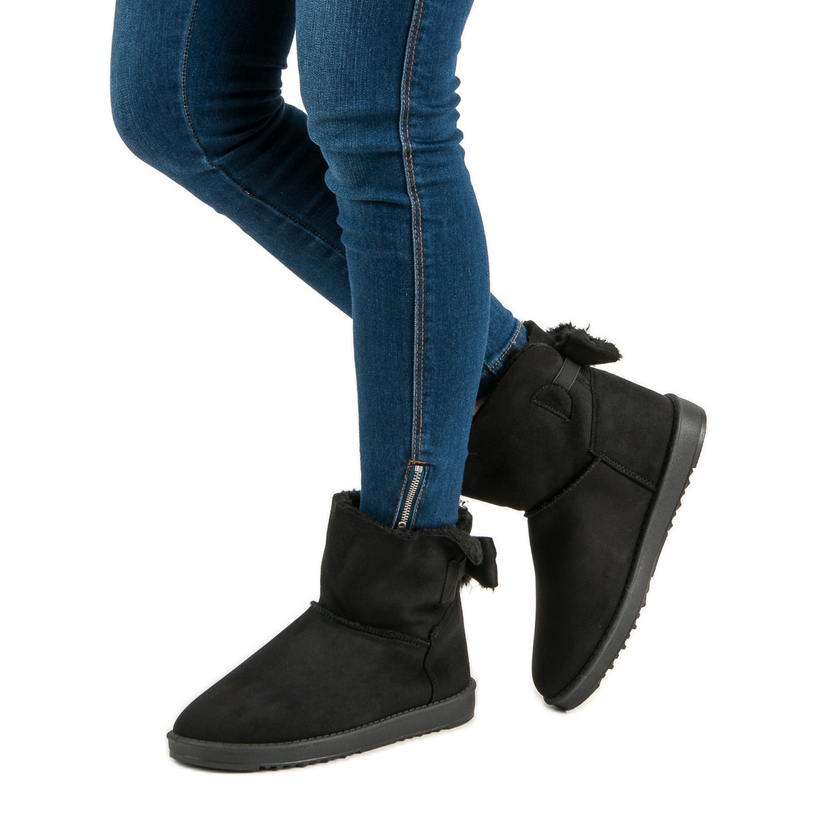 I mukluk neri con fiocco sono anche un complemento perfetto per molti stili, da quello casual a quello leggermente più elegante. Qualunque sia l'occasione, queste scarpe alte da donna metteranno sicuramente in risalto il tuo stile personale. L'altezza del tacco di 3 cm garantisce non solo comodità, ma anche allunga leggermente le gambe.