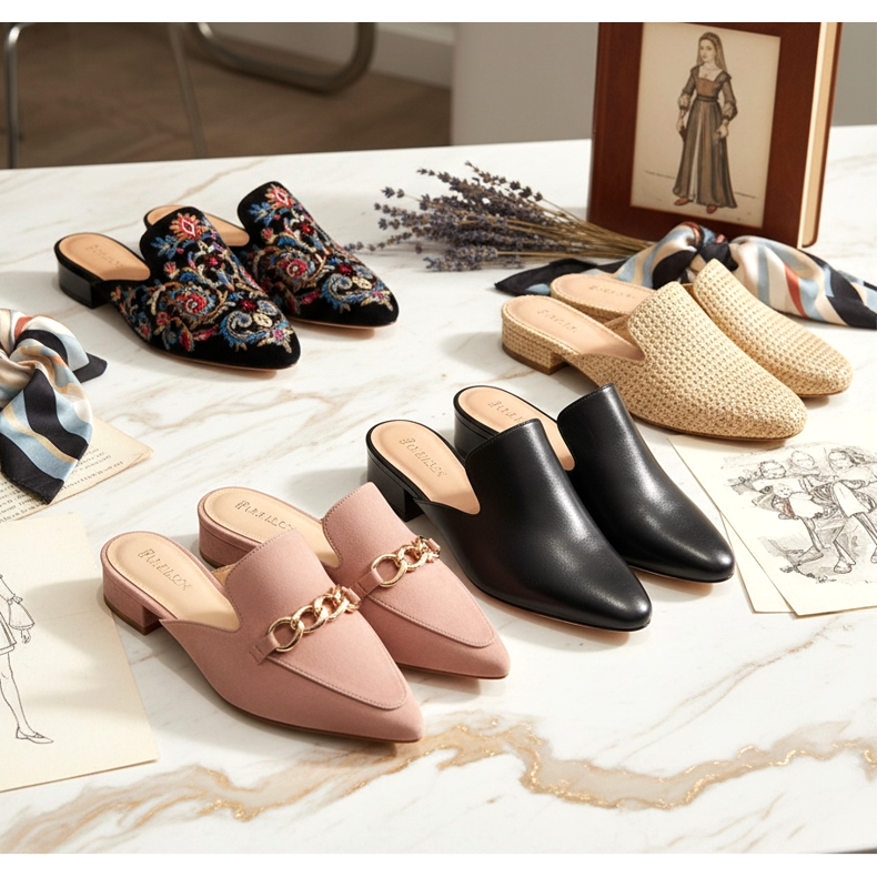 La storia dei muli risale all'Europa del XVI secolo, dove queste scarpe venivano indossate dall'aristocrazia come comode calzature domestiche. Si sono evoluti nel corso dei secoli, apparendo sulle passerelle in varie versioni: dagli eleganti tacchi alti ai modelli casual bassi.