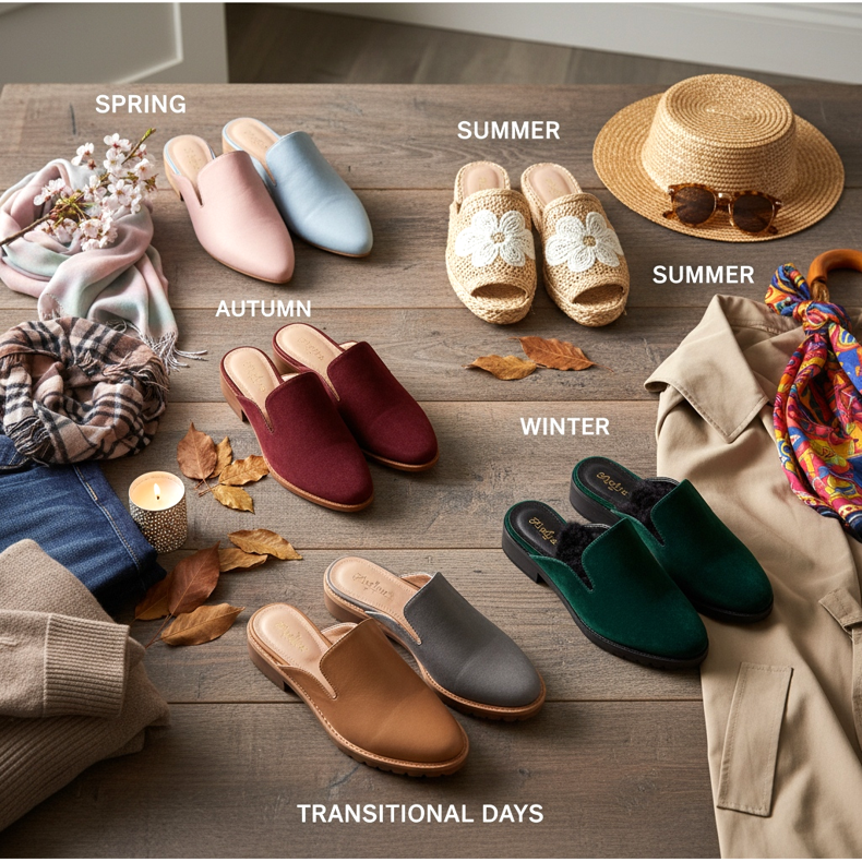 Giorni di transizione – in caso di tempo incerto, scegli gli zoccoli con la suola più spessa e la parte anteriore più costruita. Evitare materiali delicati sensibili all'umidità.