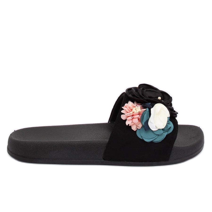 Dettagli: Nero BG19 Pantofole nere con fiori