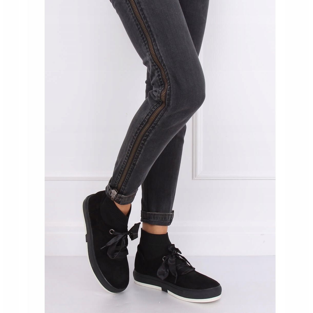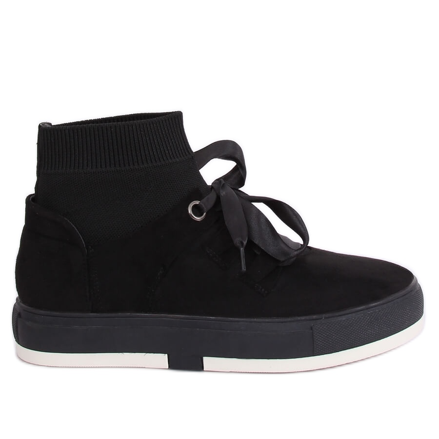 Le sneakers alte CH-95 nere sono la scelta perfetta per le donne che apprezzano lo stile e il comfort nell'uso quotidiano. Queste esclusive sneakers con suola alta uniscono design moderno e praticità. L'allacciatura decorativa con un nastro di raso conferisce loro un carattere unico, e la parte superiore della calza alla moda si adatta perfettamente alla gamba, garantendo non solo un bell'aspetto, ma anche il comfort di indossamento.