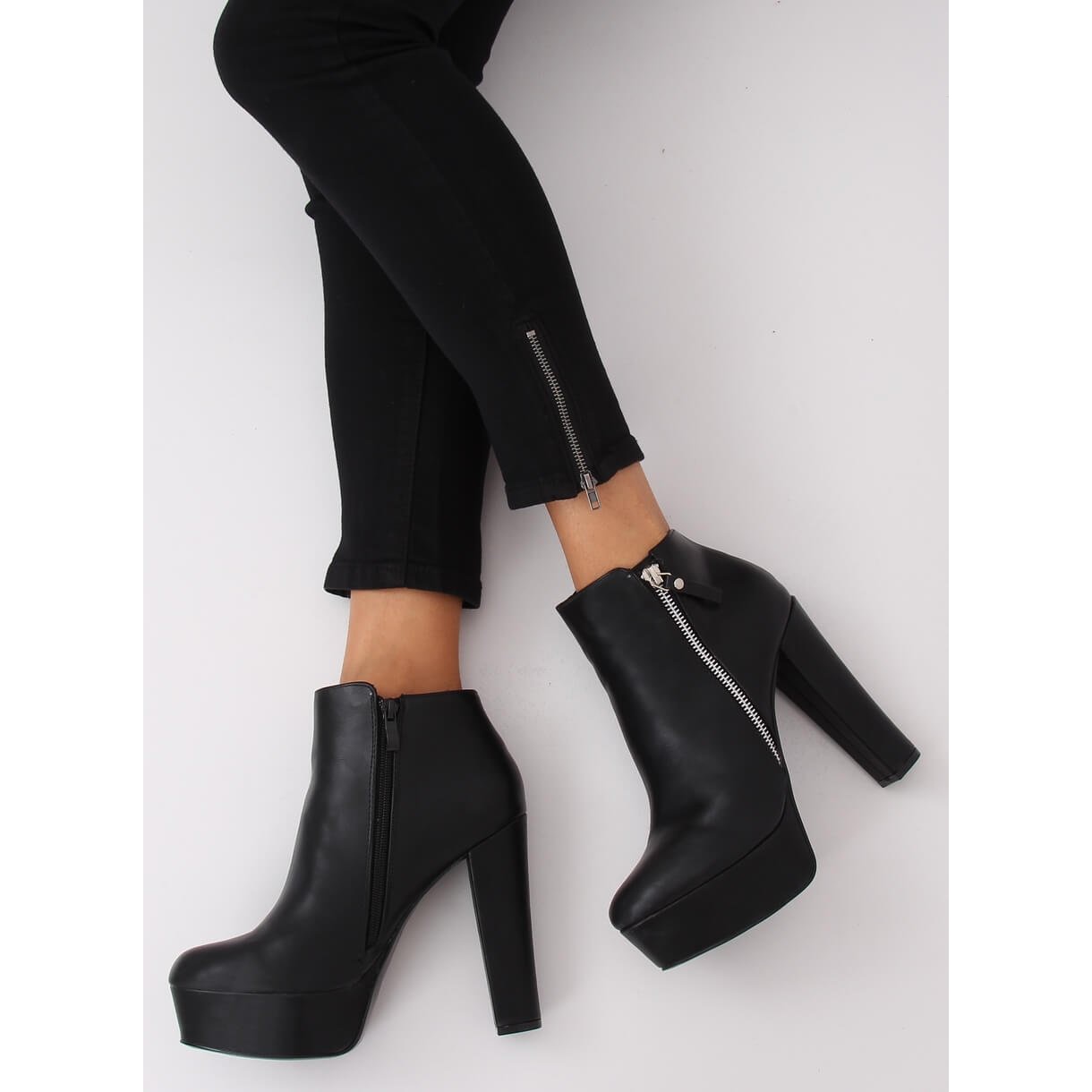 Questi sono esclusivi stivali con plateau neri KK28P Black, che sono una perfetta combinazione di eleganza e comfort. Realizzati in pelle ecologica di alta qualità, questi fenomenali stivaletti da donna attireranno sicuramente l'attenzione. Il loro tacco stabile alto 12,5 cm e il plateau alto 3,5 cm allungheranno otticamente le tue gambe, donando alla tua silhouette un aspetto più snello.