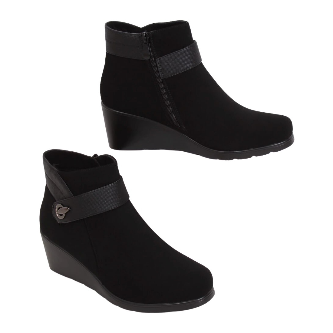 Gli stivali con zeppa neri 025 Black sono la scelta perfetta per ogni donna che vuole unire la comodità all'eleganza. Questi bellissimi stivali con altezza della zeppa di 6 cm sono caratterizzati da un taglio estremamente femminile che mette in risalto la figura. Le discrete decorazioni con zirconi li fanno brillare, mentre l'intramontabile colore nero li rende universali e si adattano a molti stili.