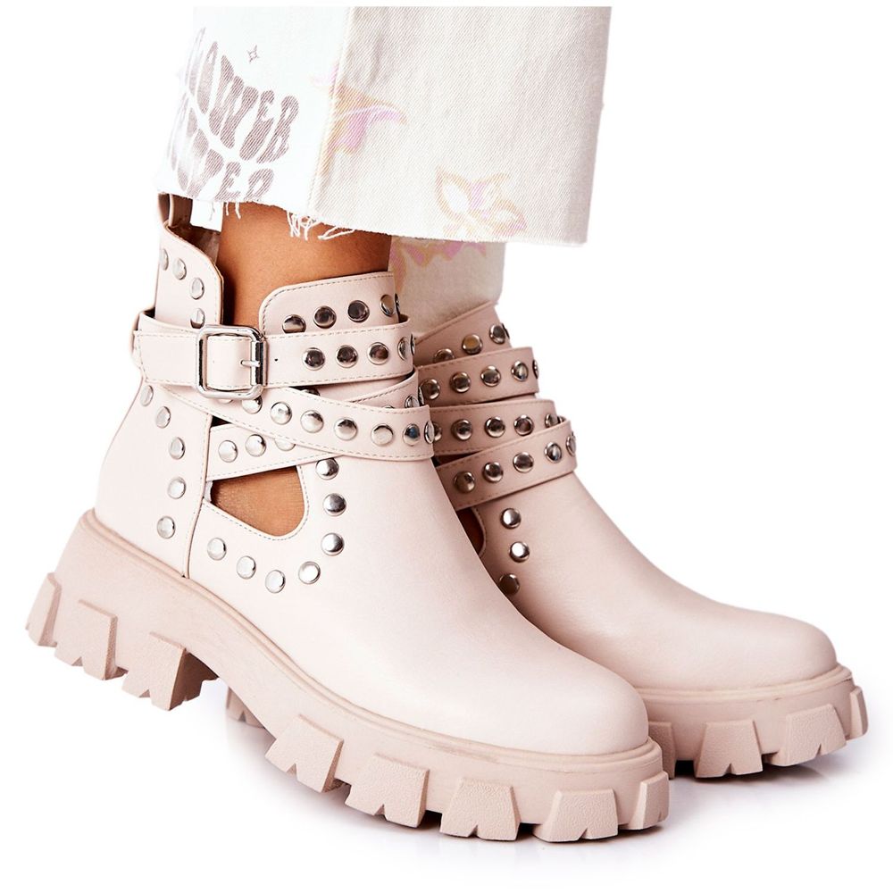 Gli stivaletti da lavoro PG1 con strass sulla piattaforma in una tonalità di beige alla moda sono la scelta perfetta per le donne che apprezzano lo stile e il comfort. La tomaia degli stivali è realizzata in pelle ecologica, che non solo si adatta alla tendenza della moda sostenibile, ma garantisce anche durata e facilità di manutenzione. L'interno è rivestito in morbido materiale tessile, che garantisce comfort per tutto il giorno.