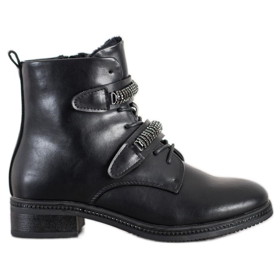 Un dettaglio unico sotto forma di decorazione con strass sulla chiusura conferisce loro un carattere rock e allo stesso tempo rende queste scarpe il complemento perfetto per uno stile casual. Una cerniera e un'allacciatura aggiuntiva garantiscono una vestibilità comoda e una vestibilità perfetta.