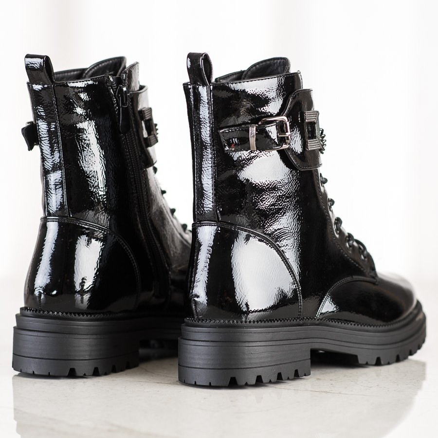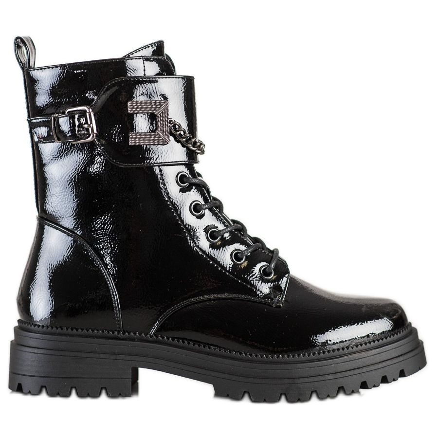 Scopri stile e comfort unici nella nuova collezione S. BARSKA! Gli stivali da lavoro laccati con catena in nero sono un must nel tuo guardaroba per la stagione autunno/inverno. Questi straordinari stivali combinano perfettamente lo stile casual, rock e fashion, aggiungendo carattere ai tuoi outfit.