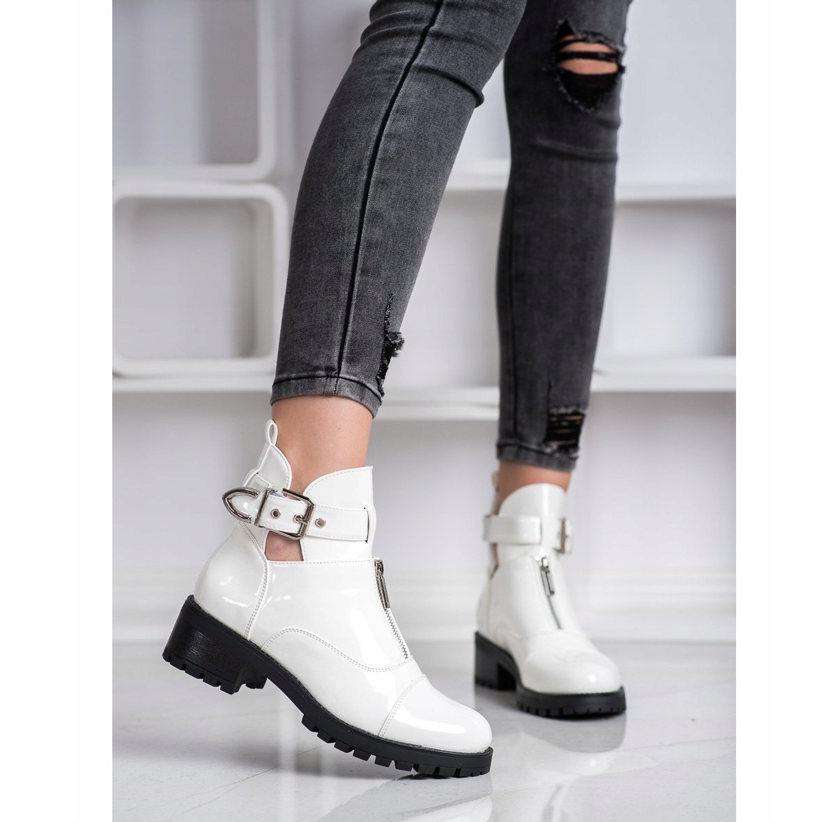 **Seastar Lacquered Workers White**: la combinazione perfetta di stile e comfort per le donne moderne. Questi accattivanti stivali bianchi, realizzati in pelle ecologica di alta qualità, attirano l'attenzione con la loro finitura laccata, che conferisce loro un carattere unico.
