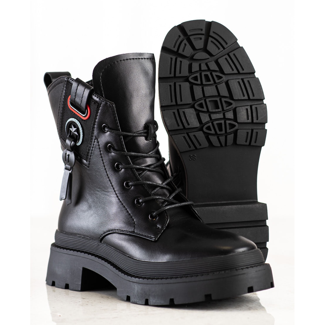I lavoratori in ecopelle nera Seastar sono la scelta perfetta per le donne che apprezzano il comfort e lo stile alla moda negli outfit di tutti i giorni. Questi eleganti stivaletti neri uniscono un carattere casual e rock, che li rende un'aggiunta perfetta a qualsiasi guardaroba autunno/inverno.