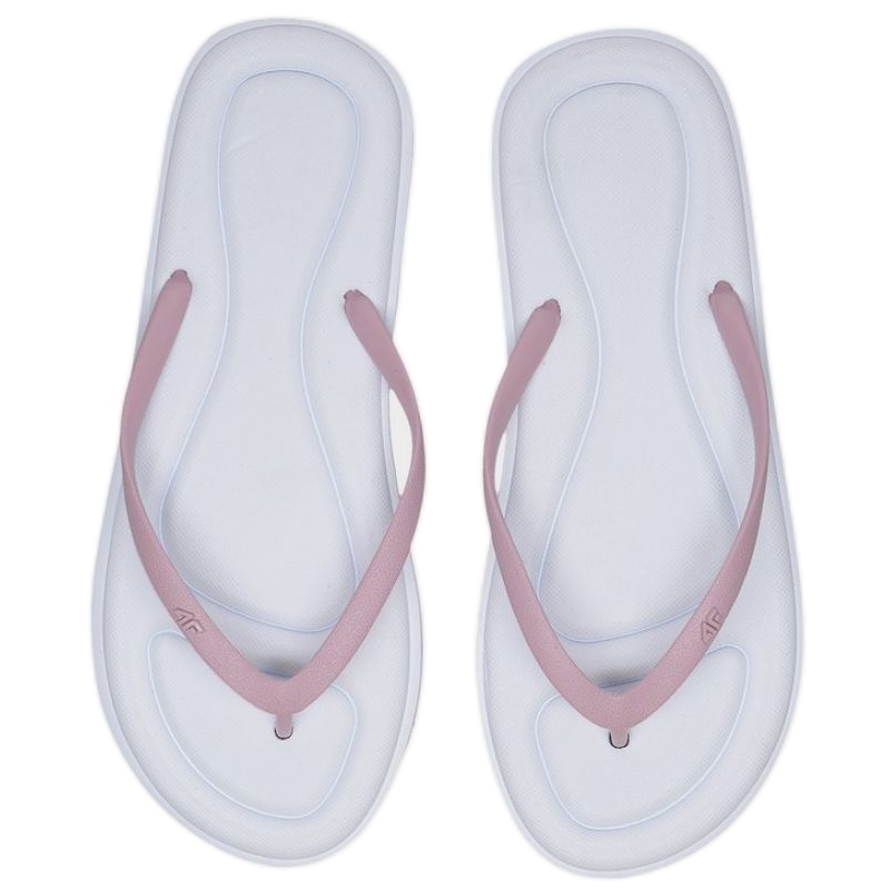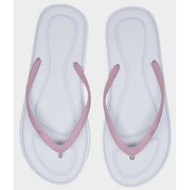 Una proposta leggera e conveniente per l'estate da 4F - Flip -Flop delle donne, che funzionerà sulla spiaggia, vicino alla piscina e nelle stilizzazioni sciolte quotidiane. Un semplice taglio minimalista, strisce di gomma e una suola in schiuma morbida garantiscono comfort durante il giorno e l'inserto profilato migliora la stabilità e impedisce al piede di scivolare.