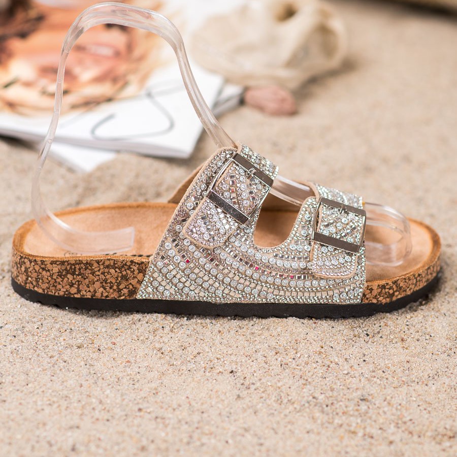 Due fibbie, decorate con cristalli lucenti e strass, aggiungono loro uno stile unico, rendendole l'elemento preferito del tuo guardaroba estivo. Le alette si infilano per indossarle e toglierle facilmente, mentre il tallone aperto garantisce traspirabilità, perfetta per le giornate calde.