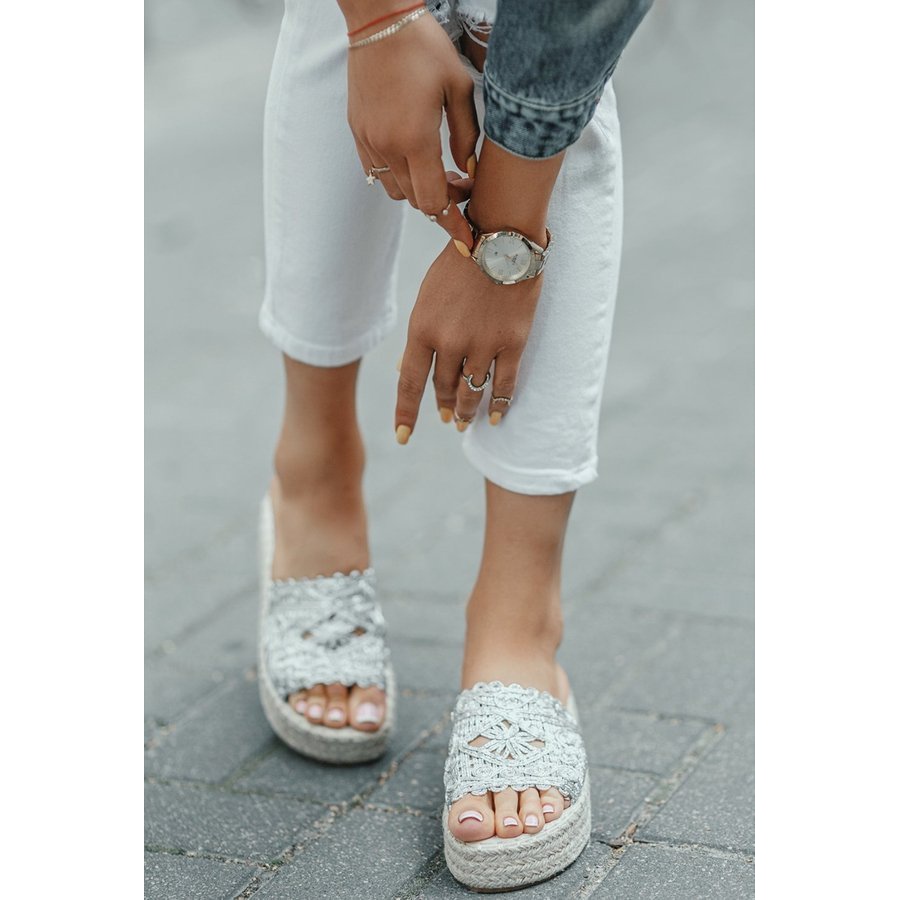 Scopri le esclusive infradito con piattaforma Sudden Draft che uniscono comfort e design alla moda! Queste bellissime infradito color argento si distinguono per una raffinata finitura in cordoncino intrecciato, che dona loro un carattere unico. La cintura del modello Sudden Draft è allo stesso tempo discreta e fenomenale: perfetta per le donne che apprezzano l'eleganza nel look quotidiano.
