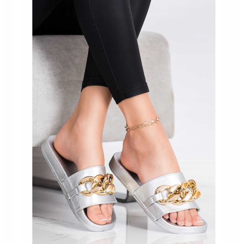Dettagli: SHELOVET Pantofole Argento Con Ornamento