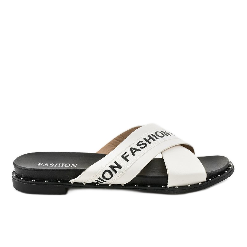 Le infradito bianche con la scritta alla moda "fashion" si abbinano perfettamente sia agli outfit quotidiani che a quelli più eleganti. Sono perfetti per l'uso quotidiano e, grazie al loro carattere universale, saranno un'ottima scelta per tutte le occasioni.