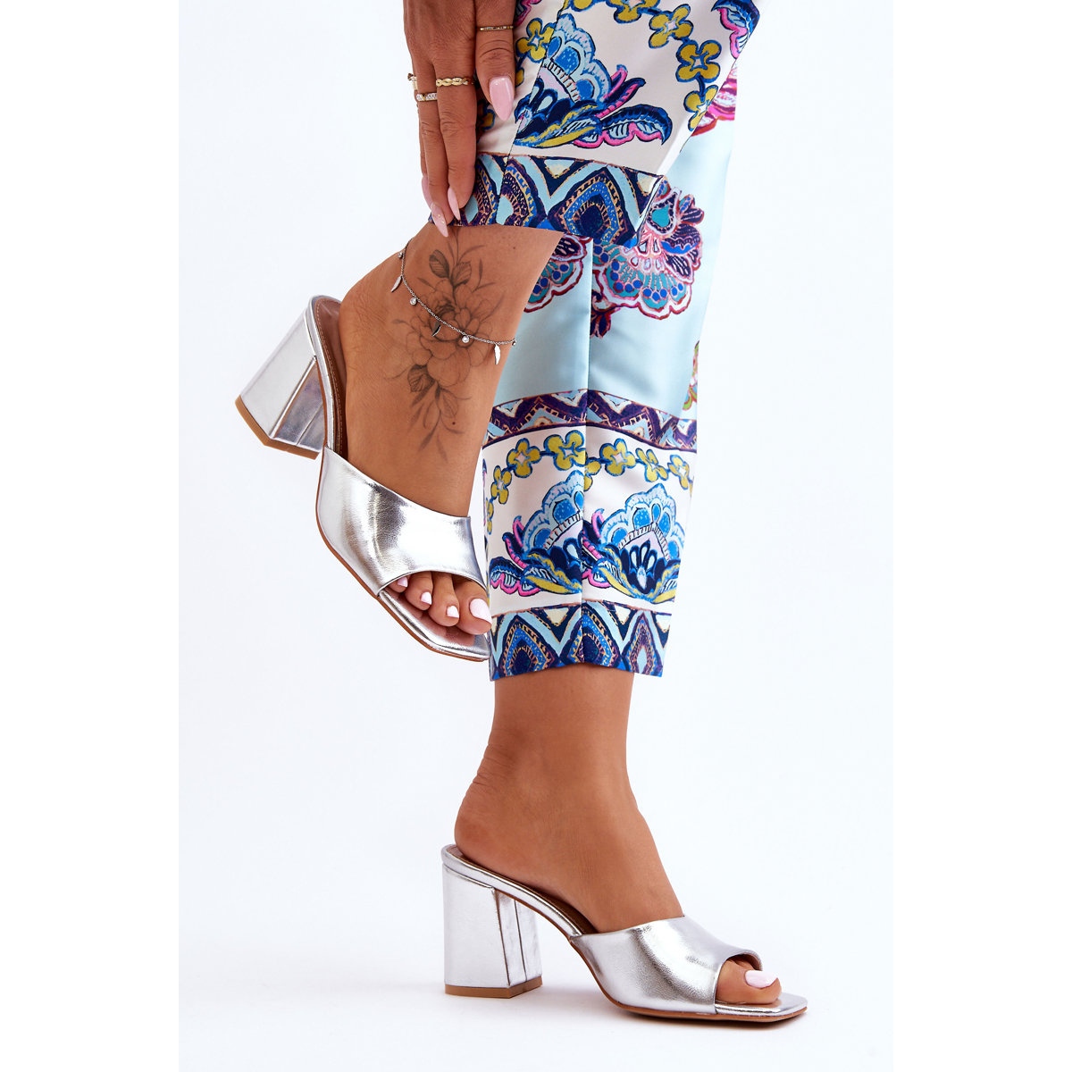 Le infradito di loara eleganti e senza tempo in un colore argento metallico sono una proposta per i giorni caldi, che combinano un taglio classico con un accento moderno. Realizzato in pelle ecologica di alta qualità, incorporata su un pilastro stabile con un'altezza di 7,5 cm, garantire l'aspetto femminile e il comfort di indossare.