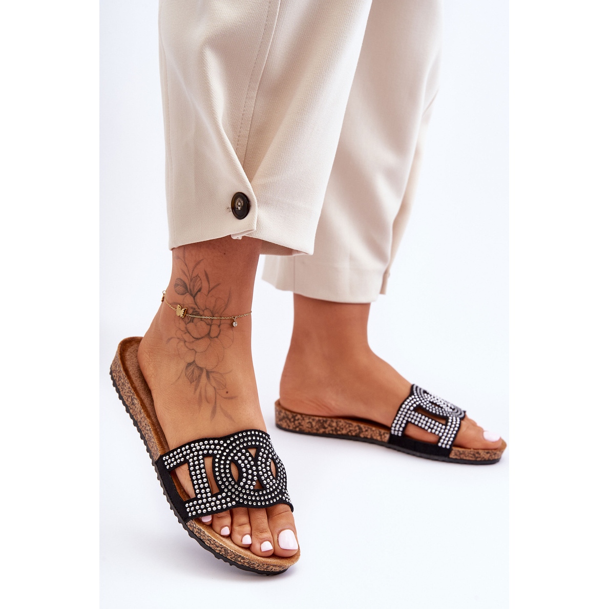 Pantofole da donna decorate con stalloni Evelins - Nero