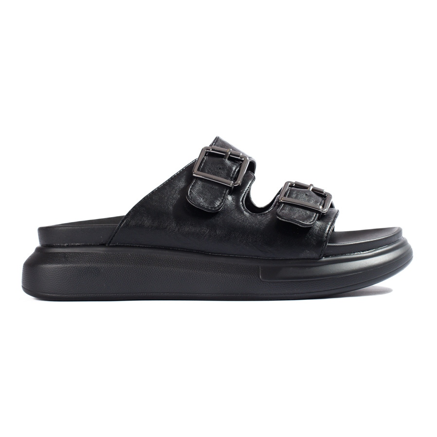 Realizzati al 100% in similpelle, sia all'esterno che all'interno, garantiscono comodità da indossare e facilità di pulizia. Il tallone aperto e la chiusura slip-on con un'elegante fibbia rendono indossare e togliere le infradito un puro piacere e allo stesso tempo aggiungono stile.