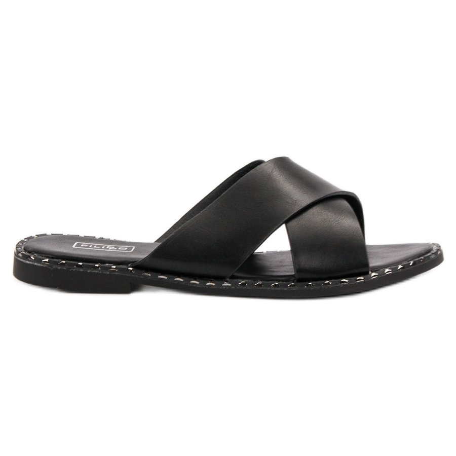 Proposte in un semplice e classico colore nero, le infradito Filippo si abbinano perfettamente a una varietà di stili, dai pantaloni di tutti i giorni agli abiti ariosi. Come calzature di tutti i giorni, sono perfette da indossare in città, in spiaggia o in giardino.