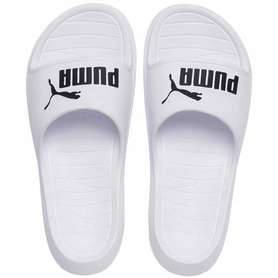Una proposta leggera e universale del marchio PUMA - Divecat V2 in classico bianco. Il design profilato con schiuma EVA garantisce il comfort di indossare e la suola esterna con scanalature migliora l'adesione della superficie umida. Il design minimalista con il logo contrastante fa funzionare le alette sia sulla spiaggia che per la piscina o per l'abbigliamento gratuito di tutti i giorni.