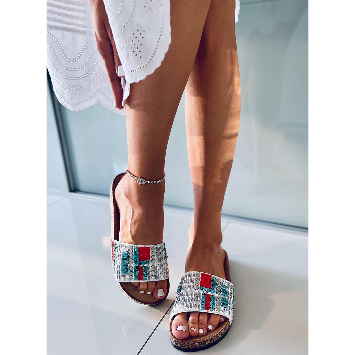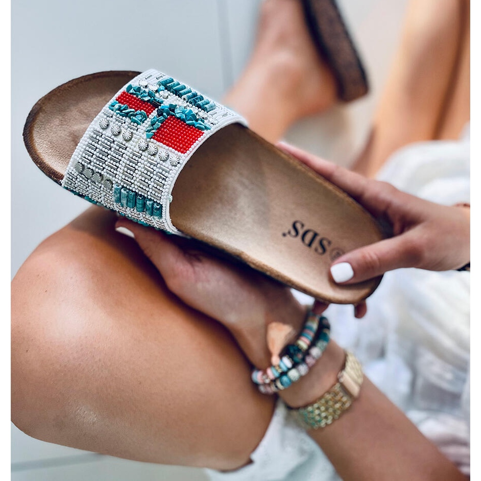 - Modello: Infradito in sughero con perline
