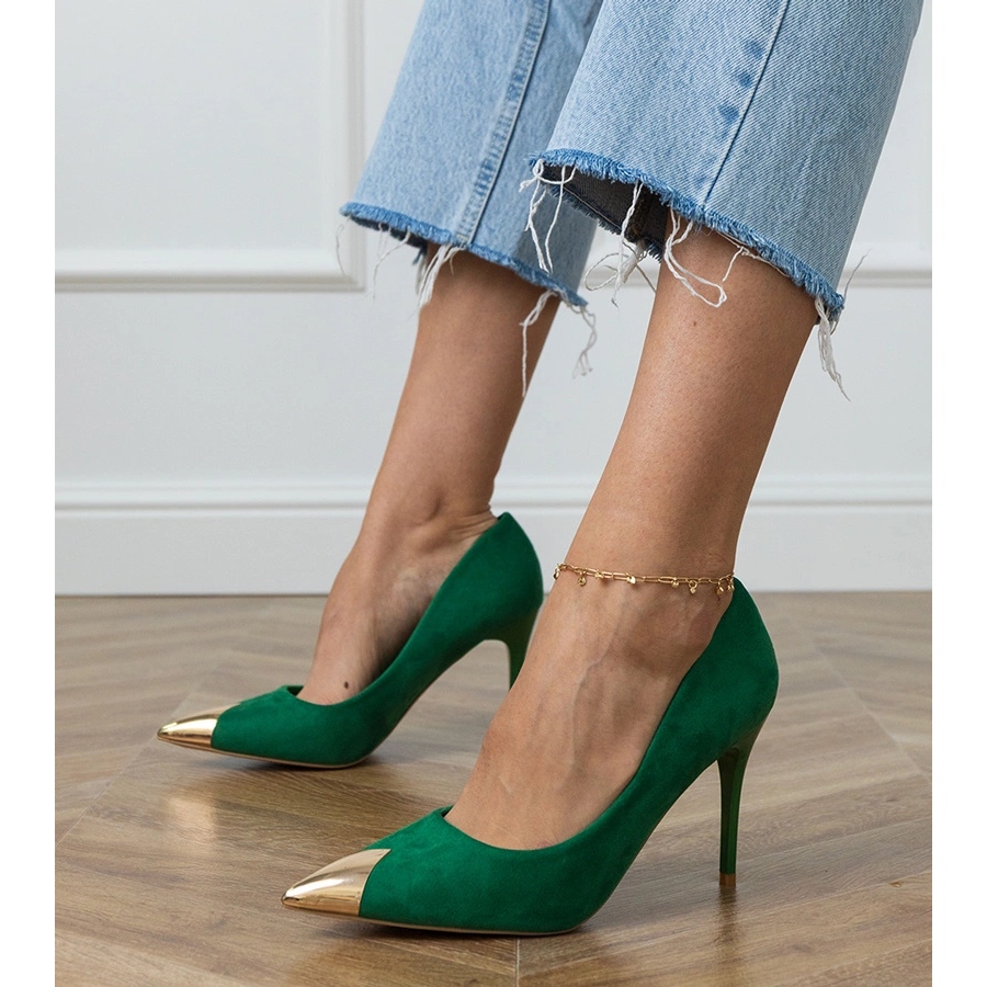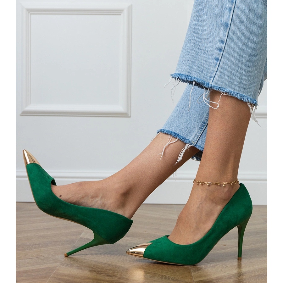Il colore verde, ispirato alle ultime tendenze, ravviverà qualsiasi stilizzazione e la suola di plastica marrone garantisce la durata e la stabilità. Il Fastener a slittamento consente di mettere avanti rapidamente e facilmente, il che rende queste pompe non solo eleganti, ma anche pratiche.