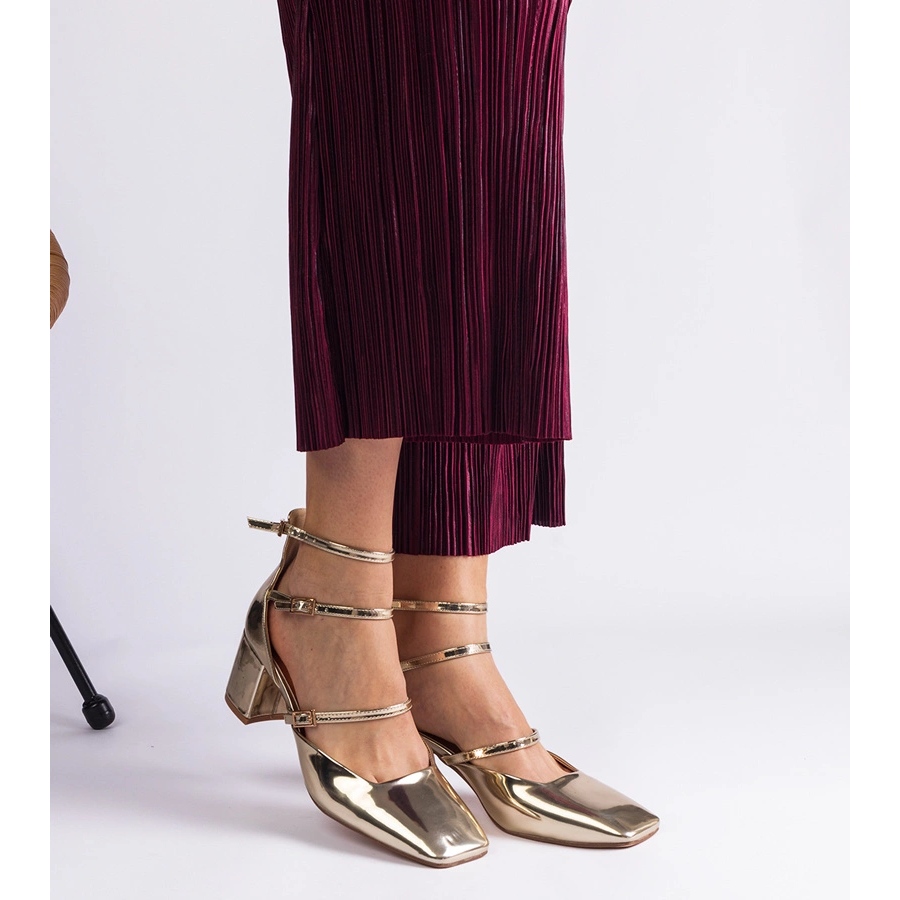 Le pompe dorate verniciate su un post con fibbie sono una scelta da sogno per le donne che vogliono aggiungere un po 'di lucentezza ed eleganza al loro look. Il modello G10059, creato da un produttore stimato, combina un design moderno con alta qualità. Il colore dorato metallico attira l'attenzione e si adatta perfettamente a varie stilizzazioni - dall'ufficio alla sera.