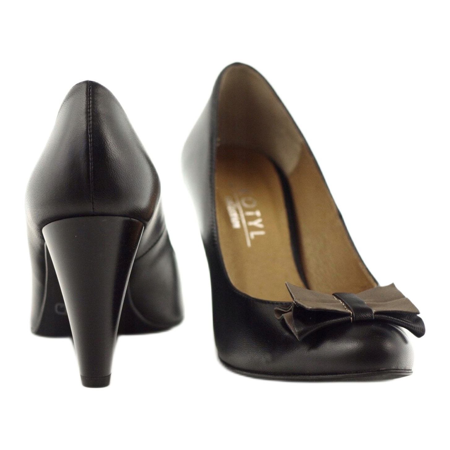 Le classiche décolleté da donna Kotyl 1307/2 in nero sono una combinazione di design senza tempo e lavorazione di altissima qualità. L'intero pezzo è realizzato in pelle naturale, un sottopiede in morbida pelle e un tacco largo stabile (8 cm) garantiscono comfort anche se indossato a lungo. Un delicato fiocco sul davanti aggiunge un accento sottile e femminile, mentre la punta arrotondata rende il modello universale ed elegante.
