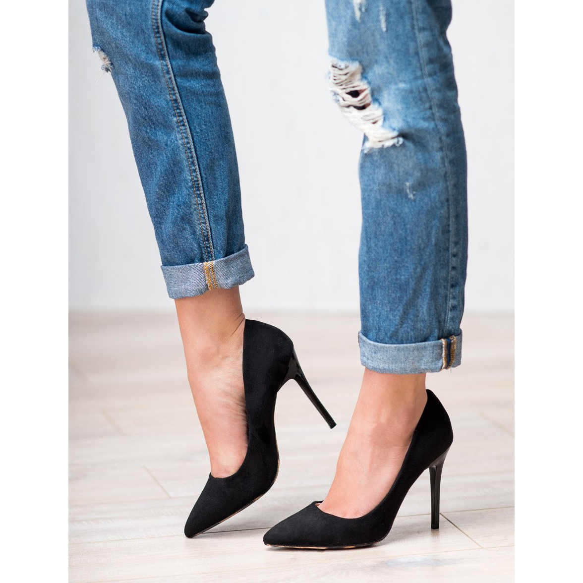 Le décolleté a tacco alto di Erynn sono la quintessenza dell'eleganza e della femminilità. Realizzate in ecopelle di alta qualità che imita la pelle scamosciata, queste classiche scarpe nere sono la scelta perfetta per le occasioni speciali. La punta affusolata e la suola profilata si adattano perfettamente alla forma del piede, garantendo comfort di calzata.