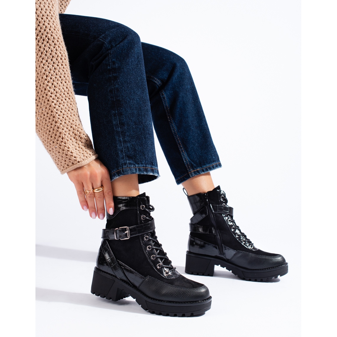 Grazie alla cerniera e all'allacciatura, questi stivali non solo sono facili da indossare, ma consentono anche di adattarli alle vostre esigenze individuali. Il motivo dominante è il classico nero, che li fa abbinare a molti stili diversi.