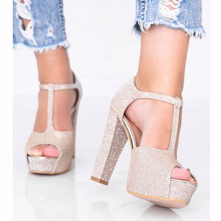 Le pompe sono disponibili con numerazione standard, il che semplifica la scelta della taglia giusta. L'interno delle scarpe è realizzato in pelle ecologica, che le rende rispettose dell'ambiente. La suola in plastica beige le rende moderne e si sposa perfettamente con il colore dorato.
