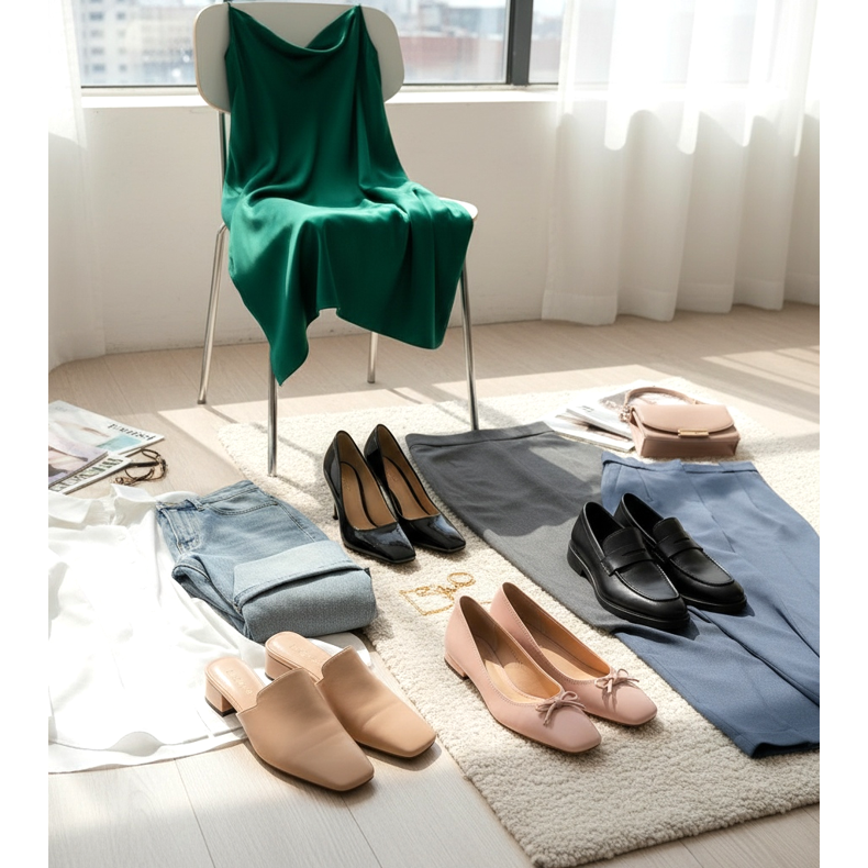 Per l'ufficio: abbina ballerine o mocassini a punta quadrata con una gonna a tubino o pantaloni a sigaretta. Questo set è la quintessenza del power log professionale del 2026. Scegli un colore di scarpe simile alla parte inferiore del tuo outfit per allungare otticamente le gambe.
